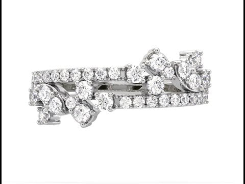 A bold pattern of side diamonds along its body, this ring contains intricate arrangements of cultivated diamonds that make for an exquisite and elegant accessory.